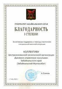 Духовное управление мусульман Забайкальского края на протяжении всего периода СВО ведёт последовательную общественную
